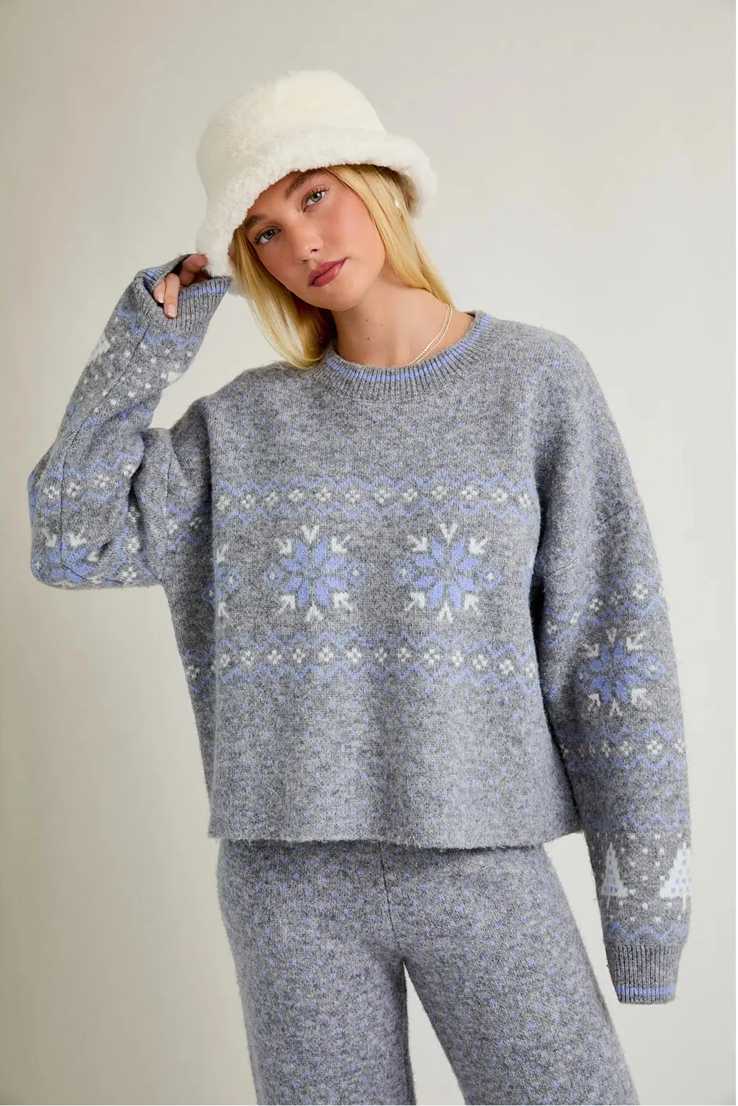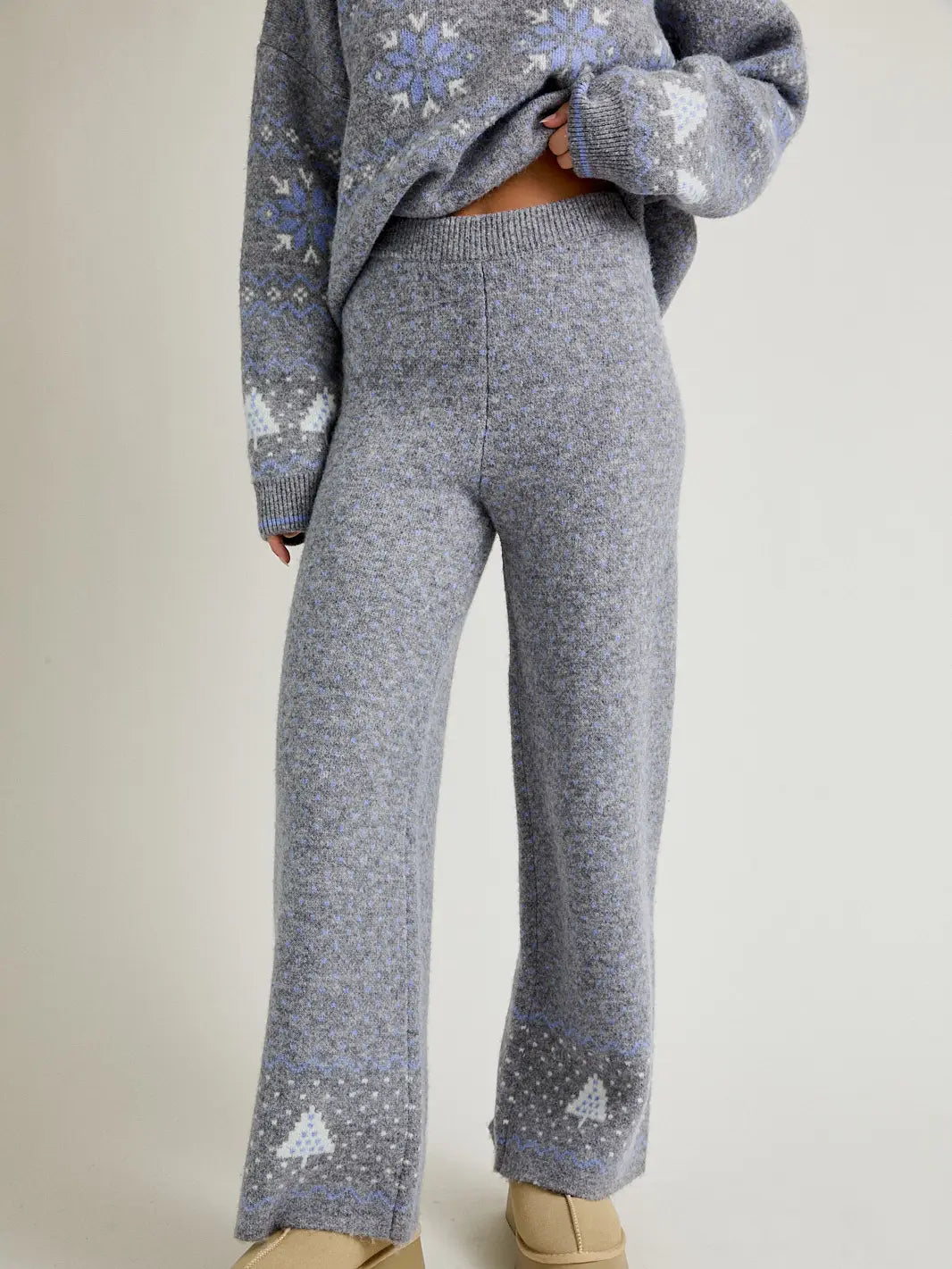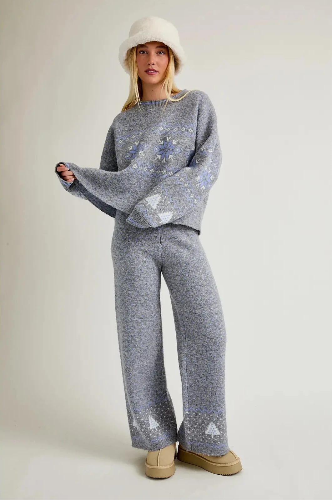 Step into relaxed sophistication with this versatile two-piece knit set. Crafted in a soft, lightweight sweater knit, the long-sleeve top is designed with a clean crew neckline, subtle ribbed cuffs and hem, and a thoughtfully relaxed fit that skims the figure beautifully. Partnered with matching high-rise knit bottoms to complete the set, this look delivers polished cohesion with minimal effort.