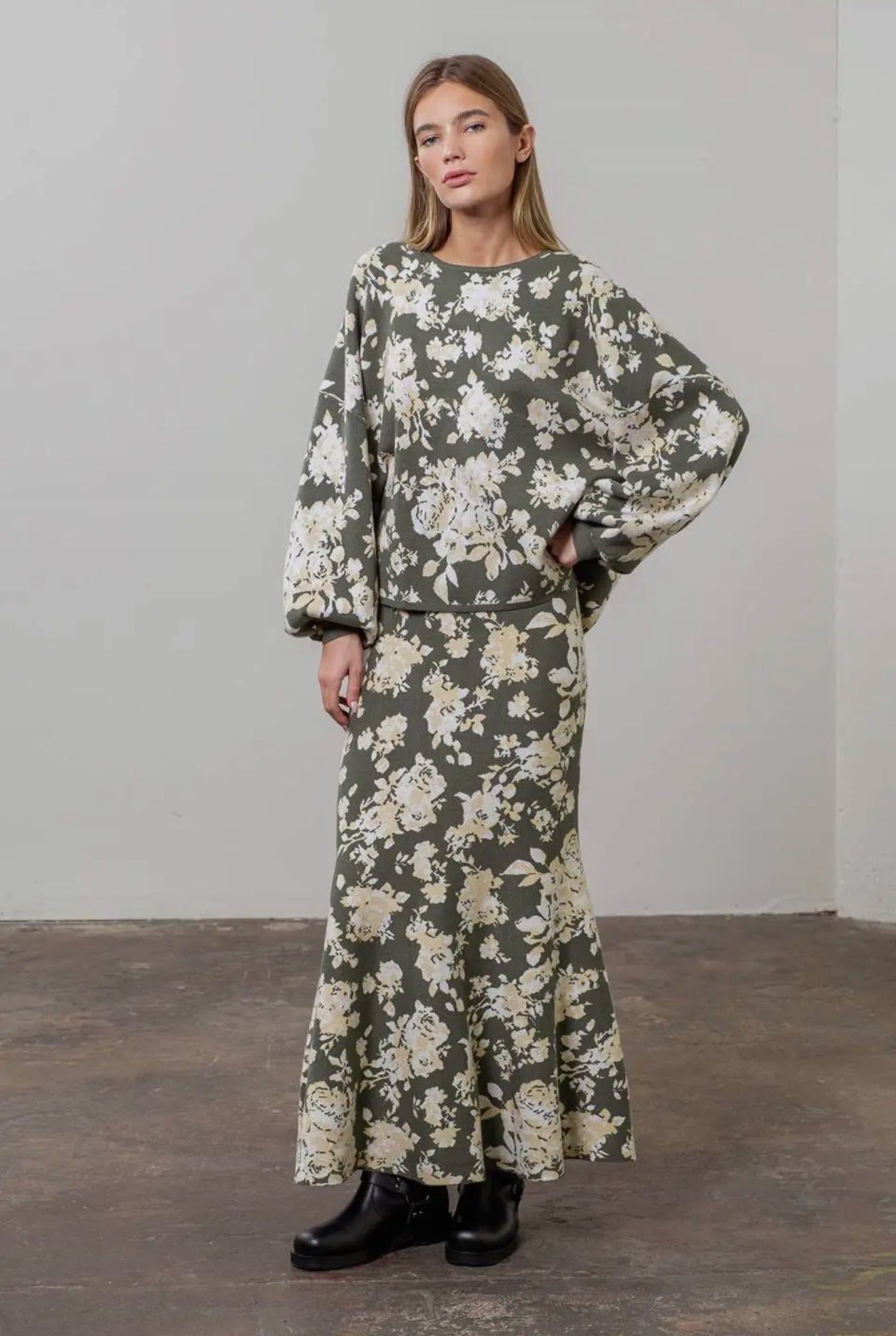 Make a statement with this effortless set, featuring a fitted sweater top and matching mermaid-hem midi skirt. Crafted from a soft, stretchy knit for a flattering drape, it’s the perfect blend of comfort and polish. Wear it together for an elevated, coordinated look or mix and match each piece for endless styling possibilities. A go-to for brunch, date nights, or chic everyday wear.